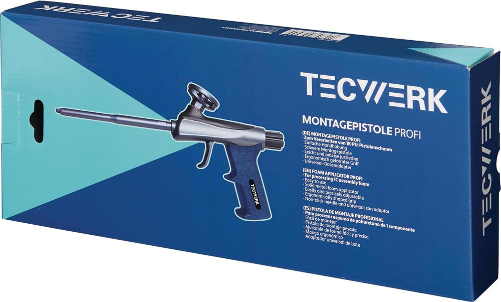 hochwertige Profi-Ausführung für den schweren Baustelleneinsatz · Metall · Komplett-Antihaft-Beschichtung · leicht und präzise einstellbar · ergonomischer Griff und Abzug für optimalen Halt · zum Verarbeiten von 1K PU-Pistolenschaum