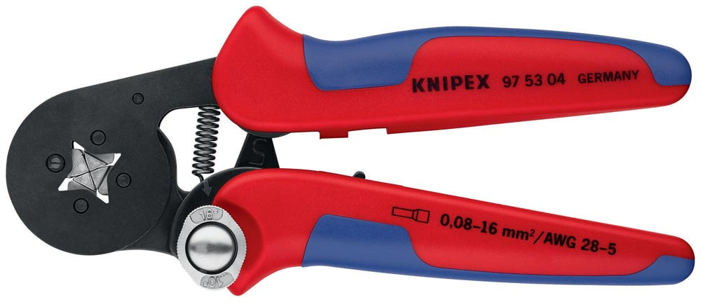 selbsteinstellend · für Aderendhülsen · mit Seiteneinführung · zum Verpressen von Aderendhülsen nach DIN 46228 (Teil 1 + 4) · für beengte Anschlussmaße · mit dem selbsteinstellenden Sechskant-Crimpprofil werden Aderendhülsen einfach, schnell und zuverlässig vercrimpt · Chrom-Vanadin-Elektrostahl in Sondergüte, ölgehärtet · Vierkantcrimpung