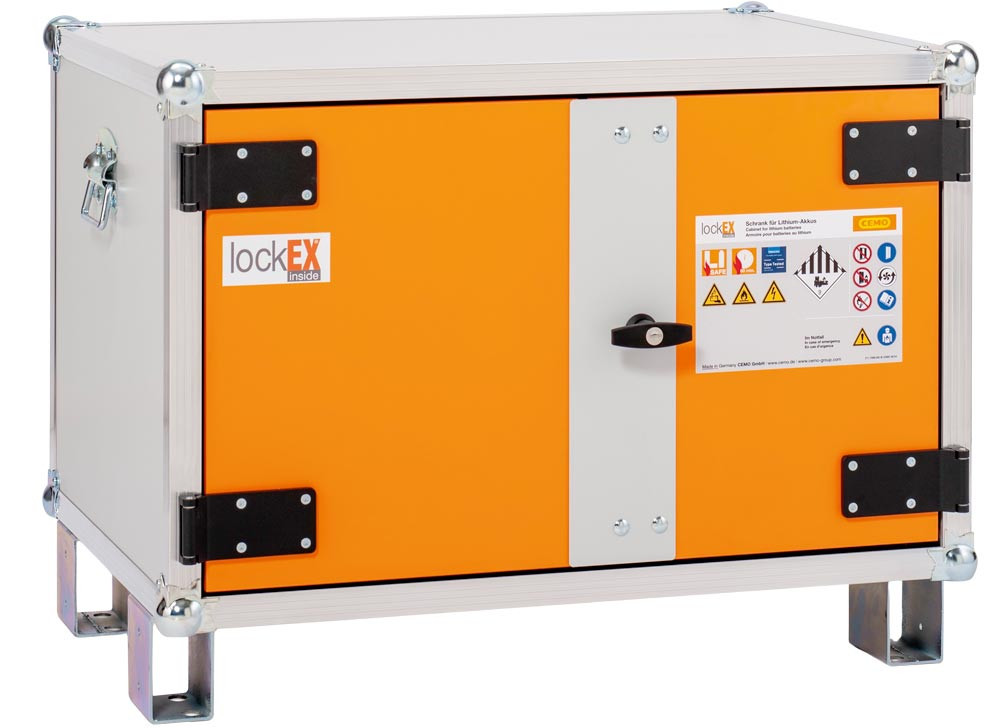 Sicherheitsregeln zum Laden von Lithium-Batterien werden eingehalten ∙ Frühzeitige Alarmierung im Schadensfall ∙ Schützt effektiv über die marktüblichen 90 Minuten hinaus – kompromisslos und ganz ohne Zeitlimit ∙ Bauweise mit nicht brennbaren, feuerwiderstandsfähigen Komponenten ∙ Zweiflügelige Türen, abschließbar ∙ Geprüft nach VDMA-Standard ∙ lockEX 2.0 ist nach dem neuesten VDMA Einheitsblatt geprüft