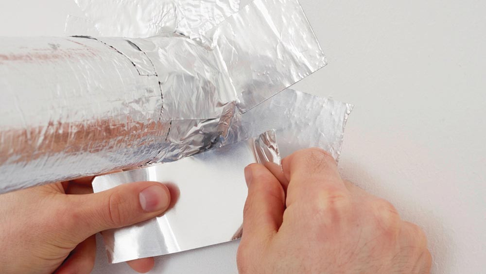 extra starkes Alu-Klebeband für professionelle Anwendungen · zum dauerhaften Abdichten von Isolierungen und Rohren, um Stoffe elektrisch und thermisch leitfähig zu machen · auch für Reparaturen von metallischen Oberflächen · Trägermaterial: Aluminiumfolie (50 μm) · anschmiegsam · beständig gegen Feuchtigkeit, Gase, Dämpfe und UV-Strahlung · elektrische und thermische Leitfähigkeit · reflektiert Wärme und Licht · flammhemmend gemäß DIN 4102 (B1) sowie nach den Anforderungen UL 510A · Temperaturresistent von -40 °C bis +160 °C