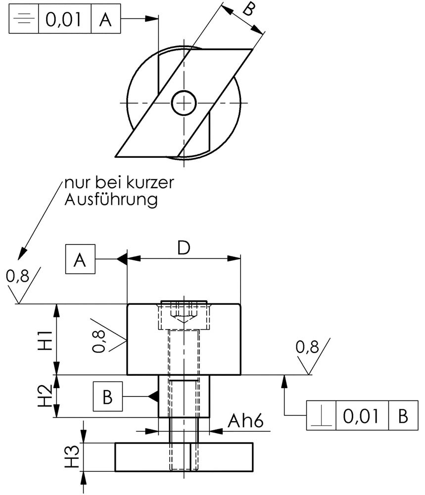 einsatzgehärtet und geschliffen · die kurze, auf ±0,01 mm Höhentoleranz geschliffene Ausführung kann auch als Auflage verwendet werden · weitere Größen auf Anfrage lieferbar