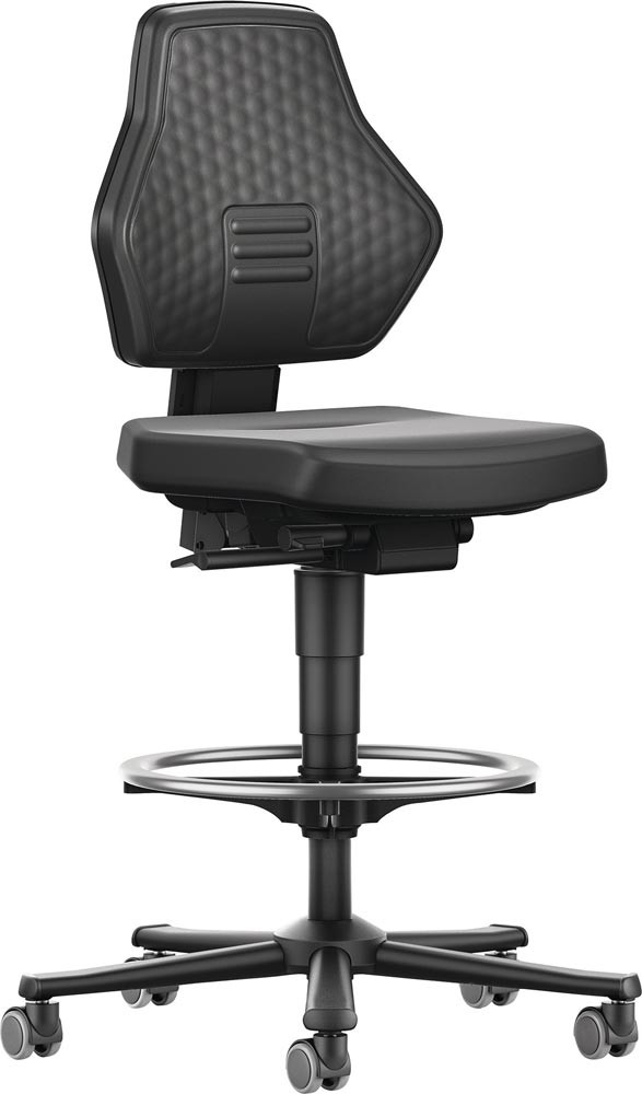 Arbeitsdrehstuhl Air Flow Rollen + Fußring Kunstlederpolster schwarz 610-890 mm E6462393