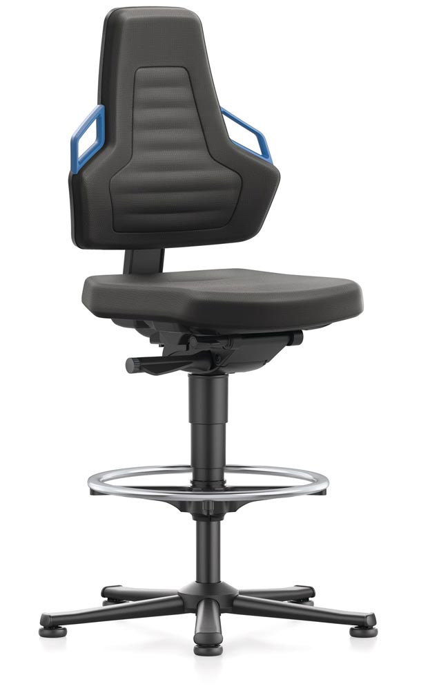 Arbeitsdrehstuhl Nexxit Bodengleiter + Fußring Grifffarbe blau Integralschaum schwarz 570-820 mm E6046375