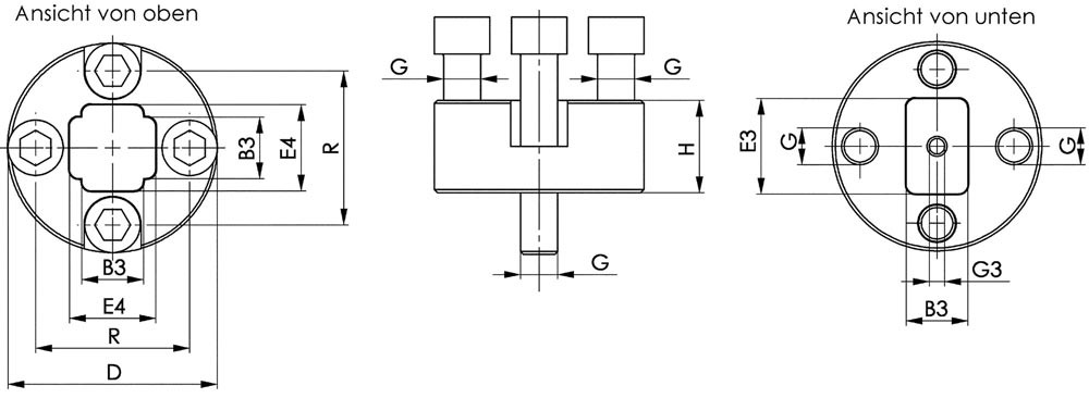 rund · für Seitenspanner Nr. 6498 · komplett mit Befestigungsschrauben · Grundkörper aus Einsatzstahl, nitriert · Befestigung mittels Schrauben der Festigkeitsklasse 10.9 · Anwendung: