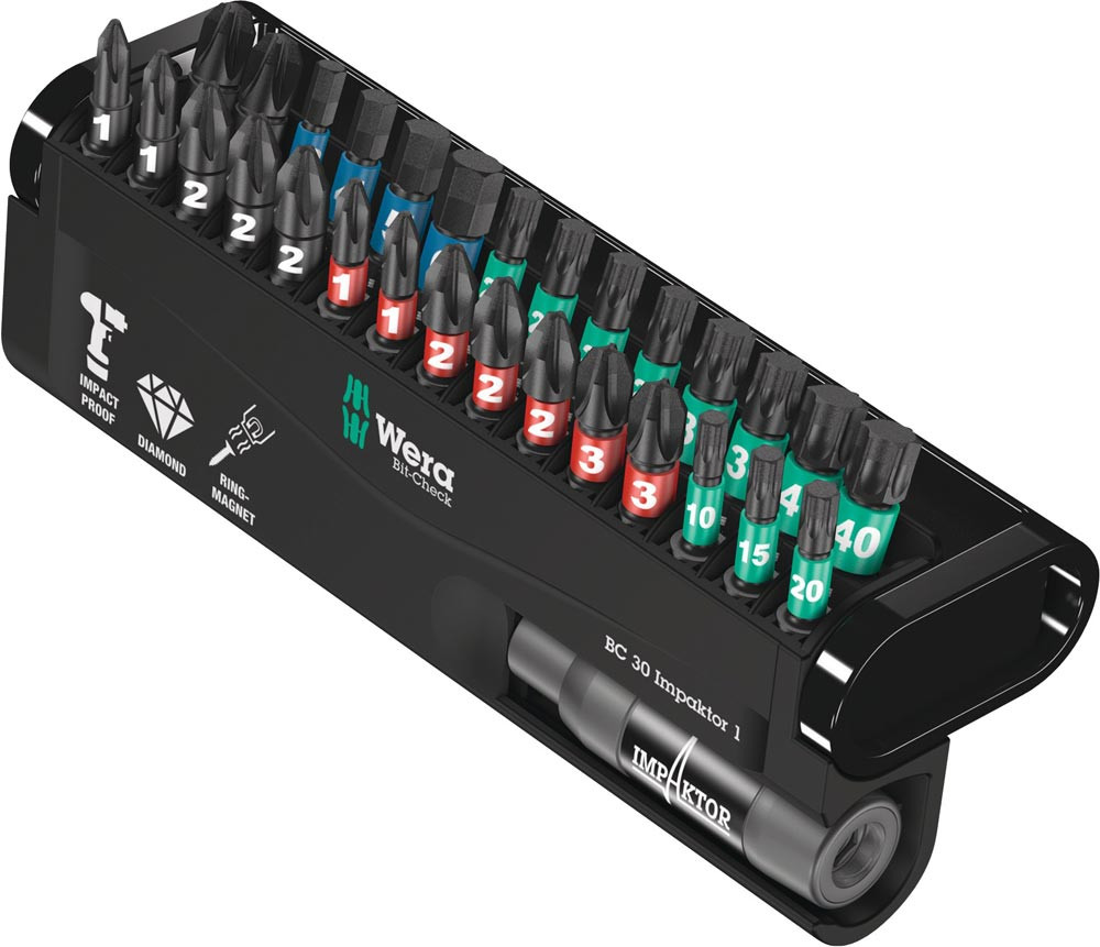 Bitsortiment Bit-Check 30 Impaktor 1 30-teilig PH/PZD/T/6-KT. Schnellwechselhalter