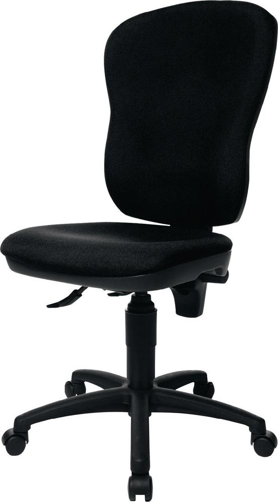 mit Permanent-Kontakt-Technik · (ohne Armlehnen) · für überwiegend sitzende Tätigkeit · Fußkreuz mit schwarzer Kunststoffabdeckeung · ergonomische Rückenlehne mit besonderer Ausformung stützt den gesamten Rückenbereich bis in den Seitenbereich · Rückenlehne in der Höhe und Neigung verstellbar · stufenlose Sitzhöhenverstellung · Bezug 100% Polypropylen · Sitzfläche B 480 x T 440 mm · stufenlose Sitzhöhenverstellung · Lehnenhöhe 600 mm · Rollen für weiche Böden