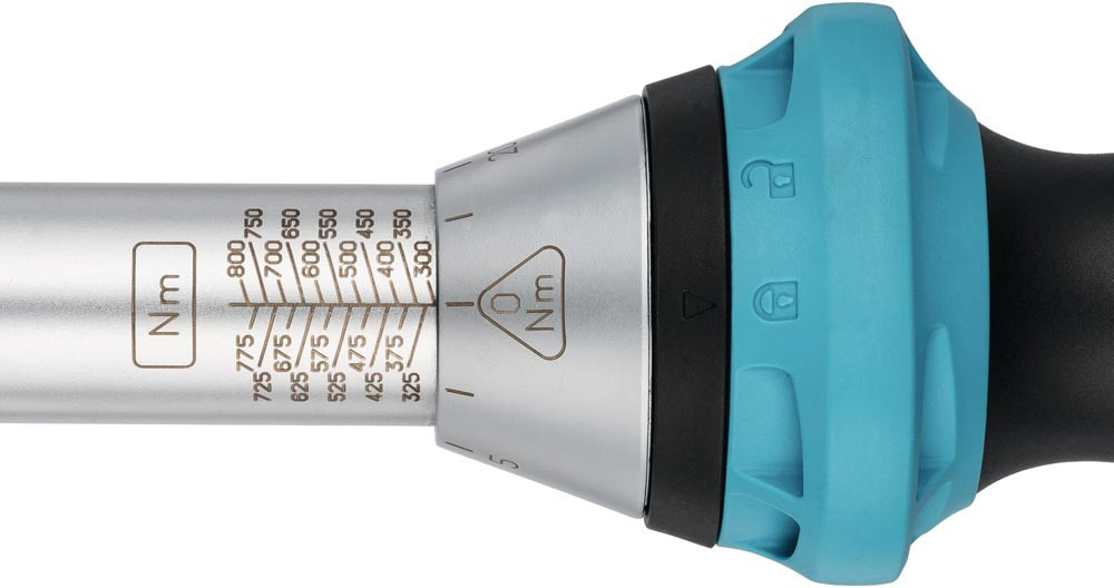 mit Umschaltknarre · für Rechtsgang · automatische, deutlich hör- und spürbare Kurzwegeauslösung beim Erreichen des vorgewählten Drehmomentes · Auslösegenauigkeit ± 3 % vom eingestellten Skalenwert (in Betätigungsrichtung) · Befestigungsmöglichkeit für Seilschlaufe durch Öffnungen am Verriegelungs-Drehkranz · dauerhafte Lesbarkeit durch Laserbeschriftung der Skalenhülse · Abrollschutz · Einstellhilfe durch Rastpunkte gewährleistet sicheres und schnelles Einstellen des gewünschten Drehmomentwertes durch Drehen des Griffes · 2-Komponentengriff · Schloss-Symbole signalisieren den jeweiligen Verriegelungszustand