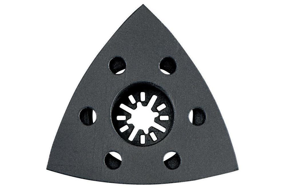 gelochte Schleifplatte mit Kletthaftung · schneller einfacher Wechsel der Schleifblätter für Multitool · Maß von Eck zu Eck: 93 mm