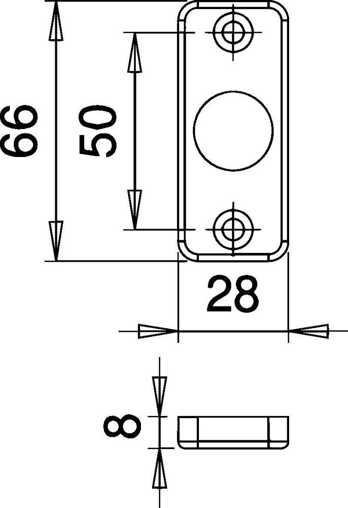 für Rahmentüren · Höhe 66 mm · Breite 28 mm · Schildstärke 8 mm · verwendbar mit allen Türdrückern und Lochteilen · Kanten eckig · sichtbare Verschraubung · Lieferung ohne Schrauben