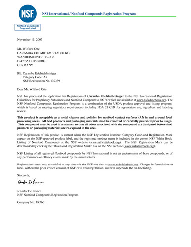· Zulassung: NSF A7