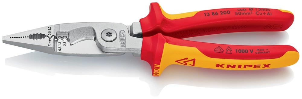 Elektroinstallationszange Länge 200 mm VDE verchromt Mehrkomponenten-Hüllen mit Öffnungsfeder E1736428