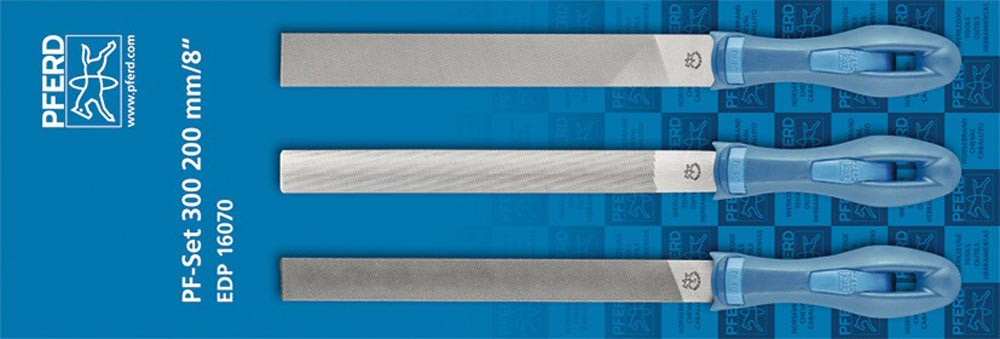 mit Ergonomie-Feilenheft · aus hochwertigem Stahl · auch zum Schärfen und zur Bearbeitung von Bronze, Kupfer, Messing und Zink geeignet · Inhalt: Feilraspel, Werkstattfeile halbrund, Hobbyfeile