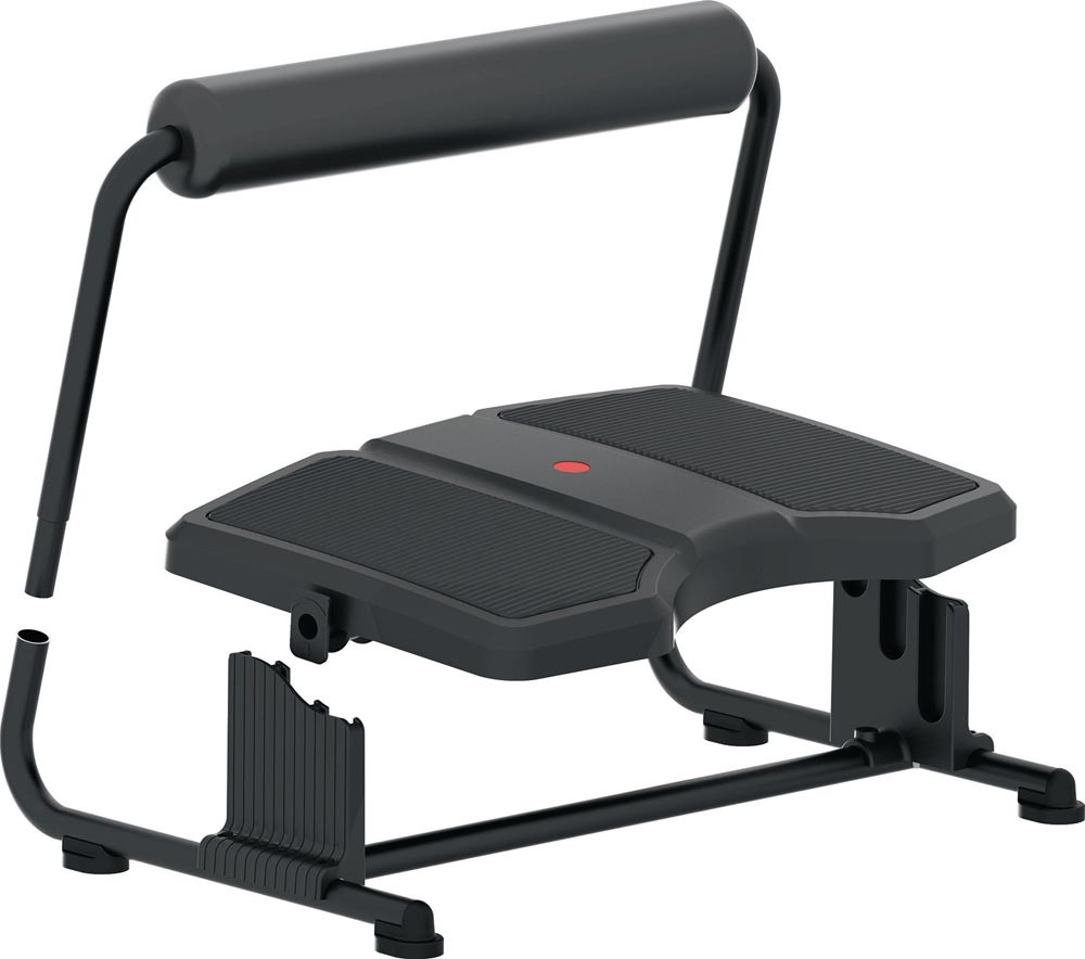 entlastet Beine und Füße · für eine entspannte Haltung der Beine und des unteren Rückens · fördert die richtige Sitzposition · Oberfläche aus strapazierfähigem Kunststoff mit rutschfester Beschichtung zur Fußmassage · mit oberer weicher Rolle für die Beine, zur Entspannung der Muskulatur und Verbesserung des Blutkreislaufes · 3-fach höhenverstellbar 95/125/155 mm