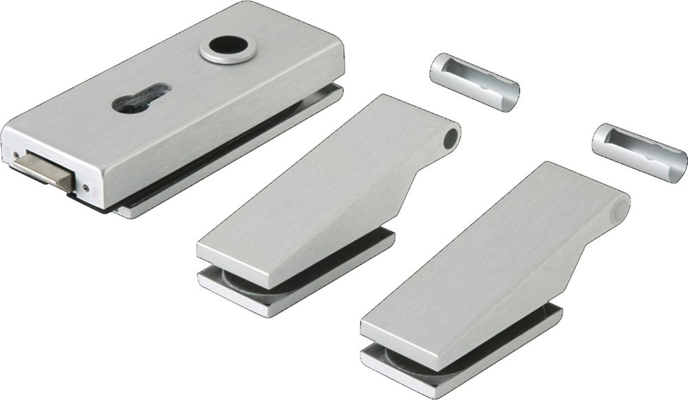 mit rechteckigem Kappenende · für 8 mm Glasdicke und 24 mm Falztiefe bzw. für 10 mm Glasdicke und 26 mm Falztiefe · DIN links / rechts verwendbar · Material Aluminium · für ESG 8 bzw. 10 mm · max. Türflügelgewicht: 60 kg / 80 kg (OFFICE Bänder) · Schlosskasten Abmessungen (BxHxT): 165x65x37 mm · Schloss nach DIN 18 251, Klasse 3 (200.000 Betätigungen der Fallenfunktion und 50.000 Betätigungen des Riegels, bei fest montiertem Beschlag nach DIN 18 257 · Einsatzbereich für 1-/2-flügelige Anlagen oder Anlagen mit Seitenteil · mit Drückerführung · ohne Drücker