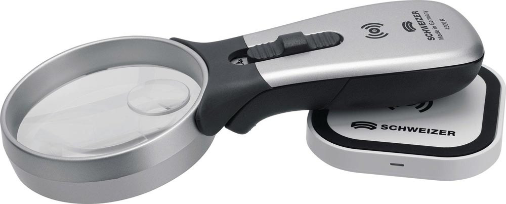 Handleuchtlupe Tech-Line Induktion Vergrößerung 4x LED Linsen-Ø 55 mm