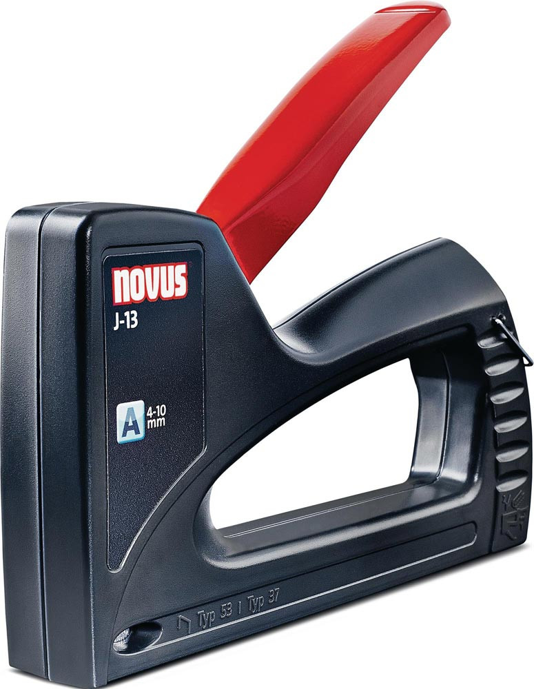 mit hochwertigem Kunststoffgehäuse · Quick-Loading-System: Unterlademechanik mit Sicherheitsentriegelung · Griffverriegelung zum Verstauen bei Nichtgebrauch · Klammersichtfenster zur Anzeige des aktuellen Heftmittel-Füllstandes · das Bild ist exemplarisch und es kommt zu einer Farbumstellung
