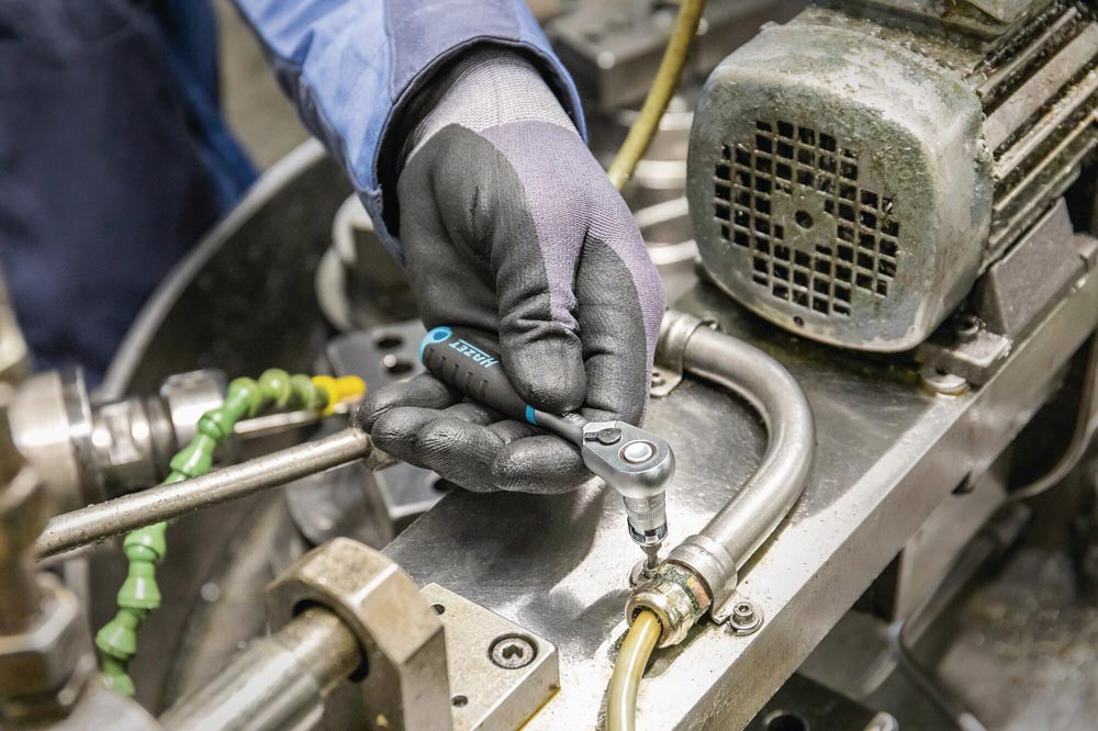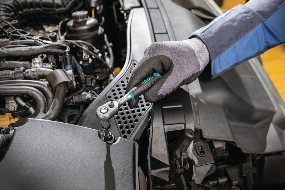 6,3 mm (1/4 ″)-Vierkantantrieb ∙ mit 2-Komponentengriff · CV-Stahl · verchromt · mit Rastfunktion gegen ungewolltes Umschalten · auch geeignet für das Arbeiten in engsten Bauräumen · statisches Drehmoment nach DIN 3122: 100 Nm · Rückschwenkwinkel 4°