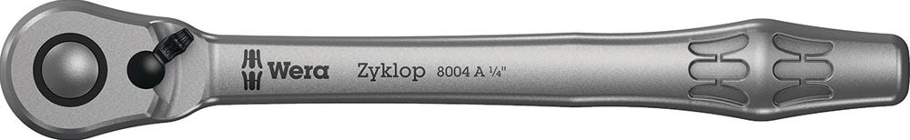6,3 mm (1/4 ″)-Vierkantantrieb · robuste, feinverzahnte, geschmiedete Vollmetallknarre · aus legiertem Werkzeugstahl · Nussverriegelungsfunktion mit Druckknopfauslösung · schlanke Bauform · langer Hebel · (optimal auch für sehr beengte Arbeitsräume geeignet) · Rückschwenkwinkel 5°