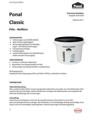gebrauchsfertiger, wasserbasierter Holz- und Bastelleim · ideal für die Montageverleimung (Dübel, Nut und Feder, Schlitz und Zapfen), Fugenverleimung (Massivholzanleimer) und Flächenverleimung (Schichtpressstoffplatten, Hartfaserplatten, Furnierkanten, o.Ä.) · lösemittelfrei · verfärbungsfrei · trocknet transparent auf · für bedingt wasserfeste Verleimungen nach DIN EN 204: D2