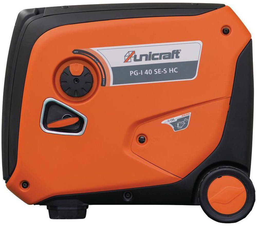 liefert Strom mit reiner Sinuswelle für Geräte mit empfindlicher Elektronik, wie z. B. PC`s · konstante Leistungsabgabe · geräuscharm · leistungsabhängige, stufenlose Drehzahlregulierung · ECO-Modus · Elektrostart: Starten auf Knopfdruck · Kontrollleuchten für Ausgangsspannung, Überlastung und Ölmangel · Choke · Fahrwerk und Transportgriff · geeignet für die Hauseinspeisung mit manuellem Netztrennschalter