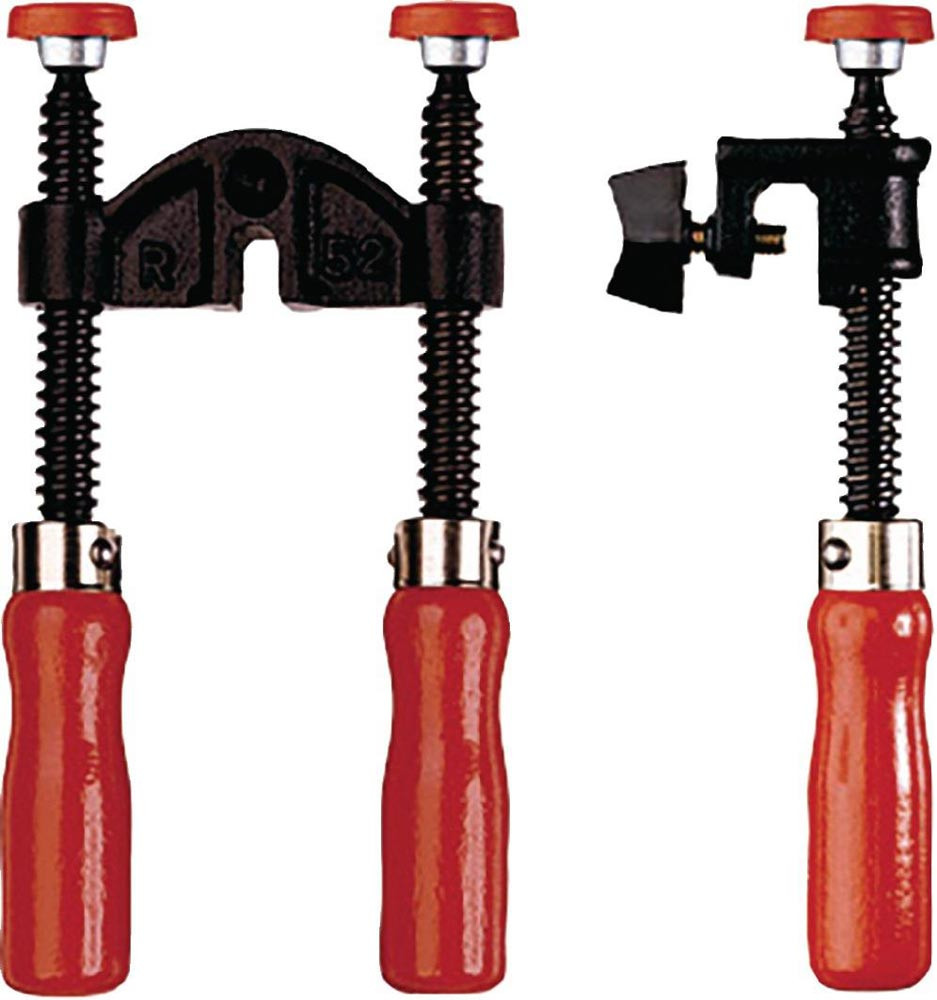 praktisches Zusatzwerkzeug · aus Temperguss · Spindel verzinkt · handgerechtes Holzheft · rot lackiert · passend für alle handelsüblichen Schraubzwingen mit max. Schienendicke von 13 mm