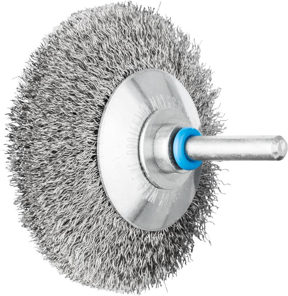 für mittelschwere Bürstarbeiten wie Entgraten, Reinigen und Entrosten von Edelstahl (INOX) · INOX-Besatz blau für den Einsatz auf allen Edelstählen (INOX) wie z. B. V4A. Edelstahldraht (INOX) hält Temperaturen bis 450 °C stand. Schaft-Ø 6 mm