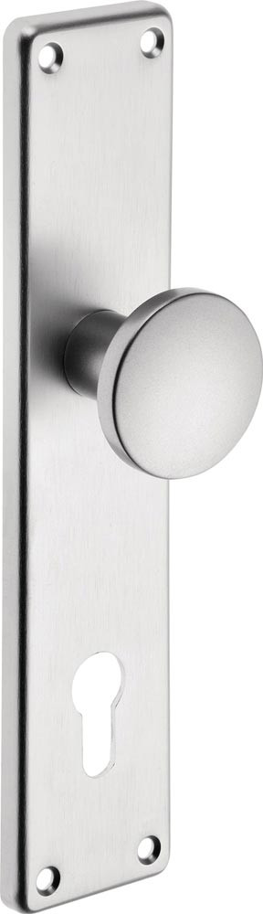 Knopf gerade · sichtbare Verschraubung · Länge 250 mm · Breite 54 mm · Knopf-Ø 50 mm · · Lochung PZ · Schildstärke 8 mm · Knopfschilder incl. Rollenwechselstift Typ O und Holzschrauben 3,5x17 mm / EST 4,5x20 mm · Abweichungen von Standard- TS bitte den entsprechenden Stift gesondert bestellen