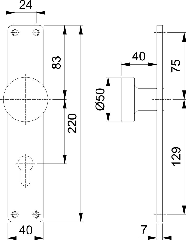für Abschlusstüren · mit Befestigungsschrauben · Lochung PZ · Entfernung 72 mm