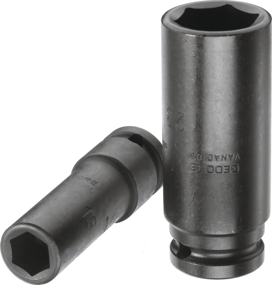 12,5 mm (1/2 ″)-Vierkantantrieb · Ausführung nach DIN 3121 ISO 1174 · Form G 12,5 · mit Stiftbohrung und Ringnut · lange Ausführung · 6-kant · UD-Profil für schonende Kraftübertragung · Sonderstahl · manganphosphatiert · für härteste Beanspruchung auf Elektro- und/oder Druckluft-Schlagschraubern