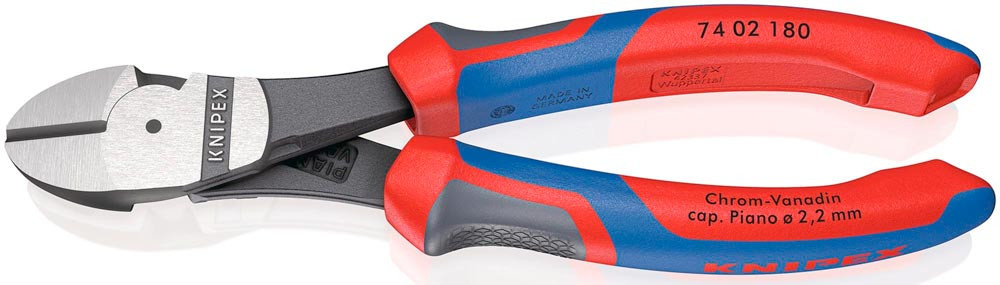 20 % Kraftersparnis gegenüber herkömmlichen Seitenschneider · Schneiden zusätzlich induktiv gehärtet, Schneidenhärte ca. 64 HRC · Chrom-Vanadin-Hochleistungsstahl, geschmiedet, mehrstufig ölgehärtet
