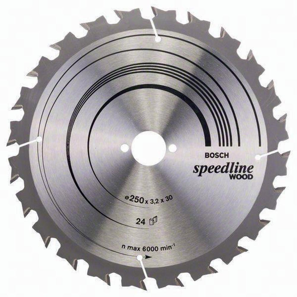 Kreissägeblatt Außen-Ø 250 mm Zähnezahl 24 WZ Bohrung 30 mm Schnittbreite 3,2 mm HM