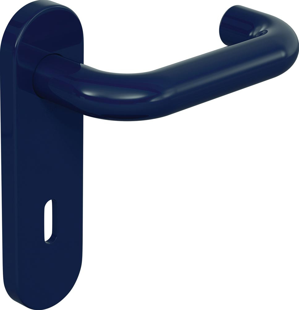 Türdrücker in U-Form aus Polyamid mit durchgehendem Stahlkern bis in das Drückerende, durchgängig eingefärbt, Durchmesser 20 mm, mit Ansatzführung und Rastnut, Montage durch einfaches Einrasten der Türdrücker in die auf der Tür vormontierten Unterteile.