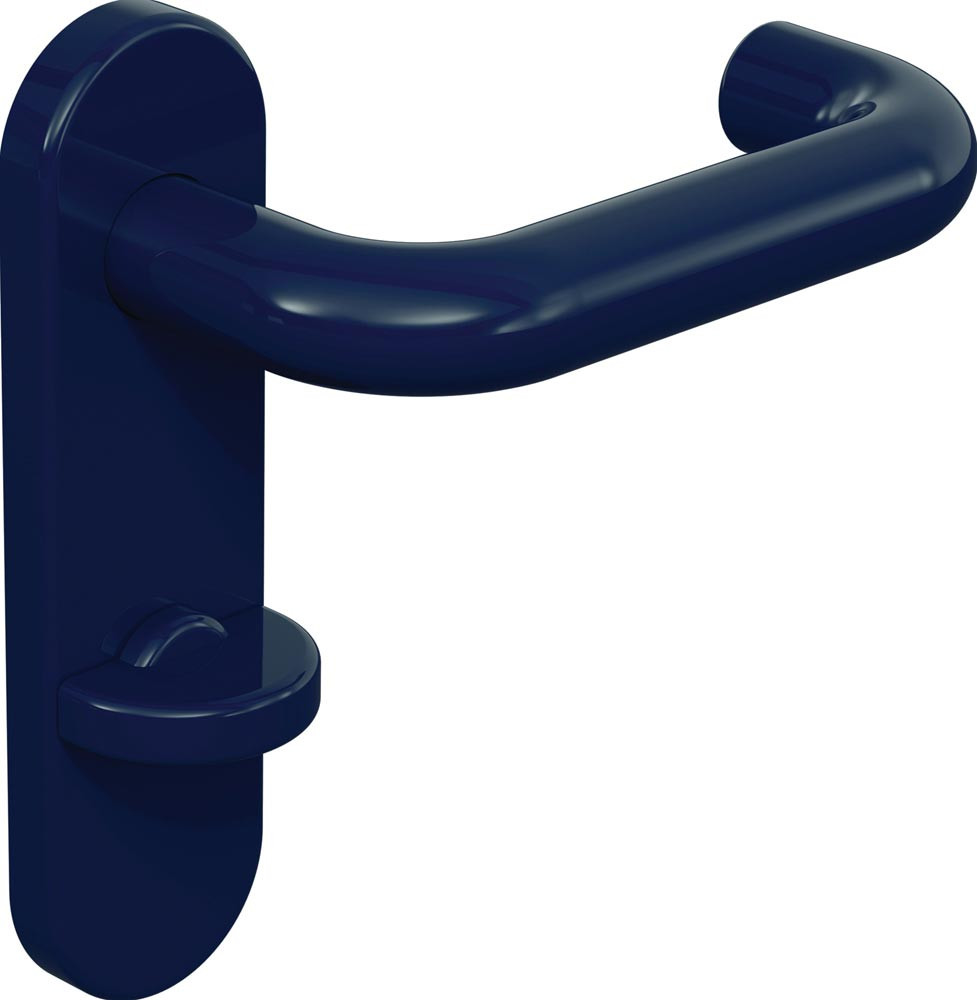 Türdrücker in U-Form aus Polyamid mit durchgehendem Stahlkern bis in das Drückerende, durchgängig eingefärbt, Durchmesser 20 mm, mit Ansatzführung und Rastnut, Montage durch einfaches Einrasten der Türdrücker in die auf der Tür vormontierten Unterteile.