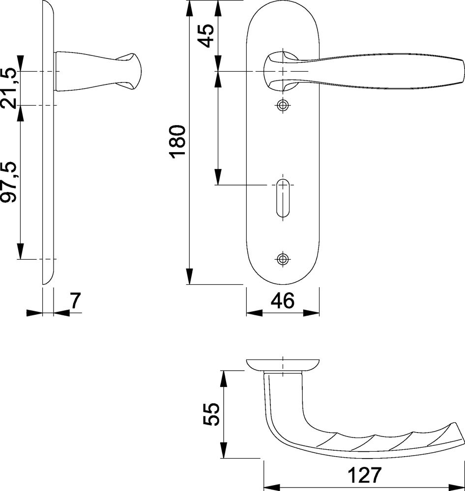 Kurzschildgarnitur New York 1810/273KP Aluminium F1 OB abgerundet Drückergarnitur