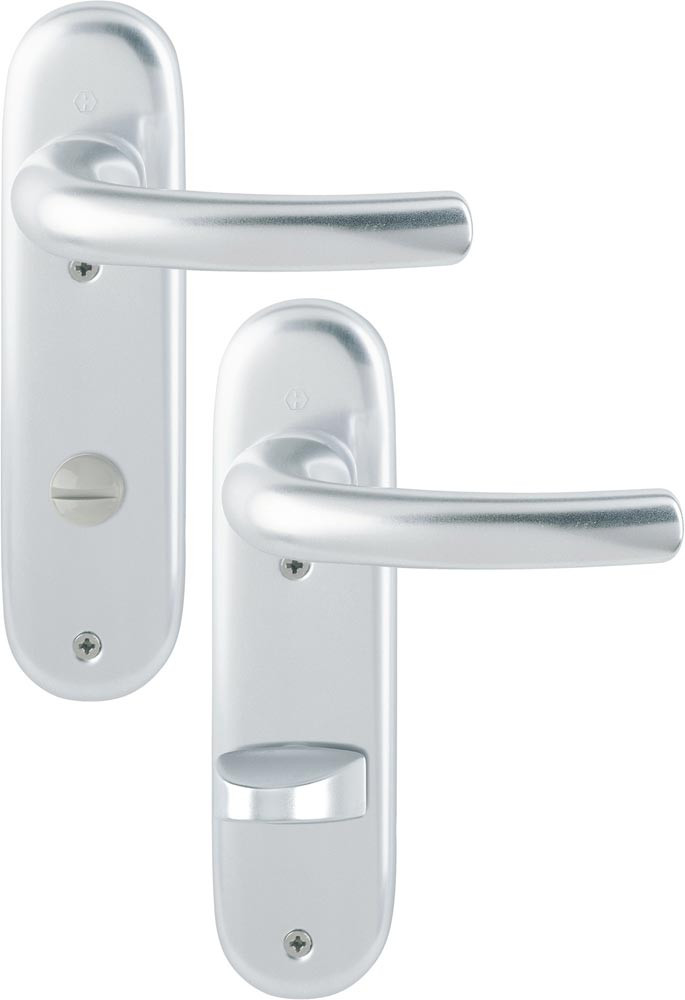 Innentür-Kurzschild-Garnitur: geprüft nach DIN EN 1906 (Benutzer-Kategorie 3) · Türgriffe mit Schnellstift-Verbindung (mit 8mm-Vollstift) · Schilder sichtbar verschraubt · für Türstärke 37 - 42 mm · Anschlagrichtung DIN links / rechts