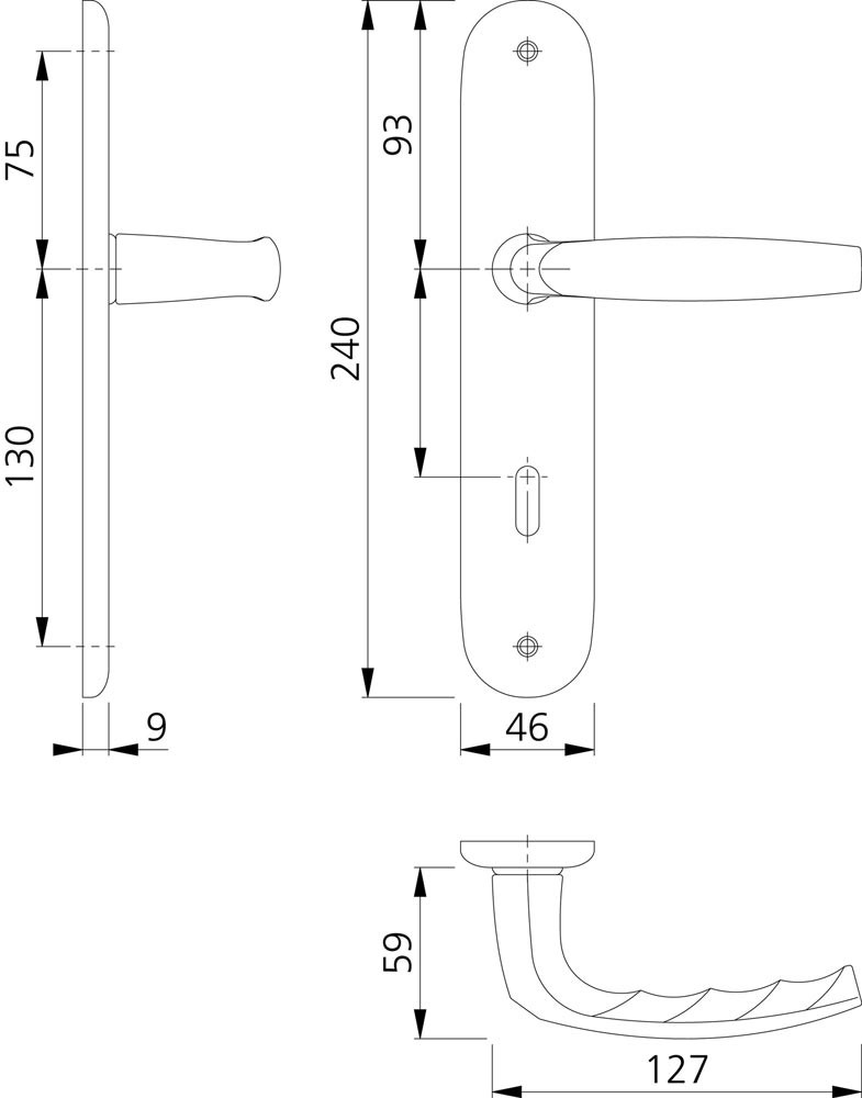 Langschildgarnitur Atlanta 1530/273P Aluminium F1 SK/OL 78 mm DINlinks / rechts E6428202