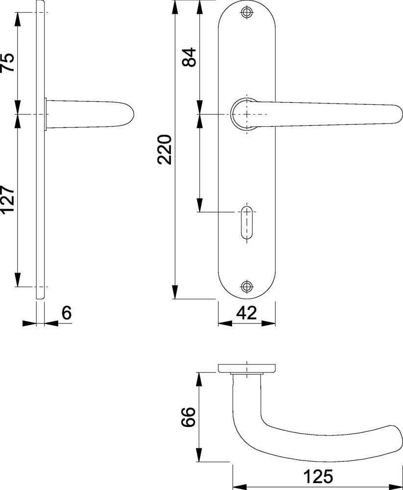 Langschildgarnitur Denver E1310Z/302 Edelstahl F69 OB 72 mm DINlinks / rechts E6428209