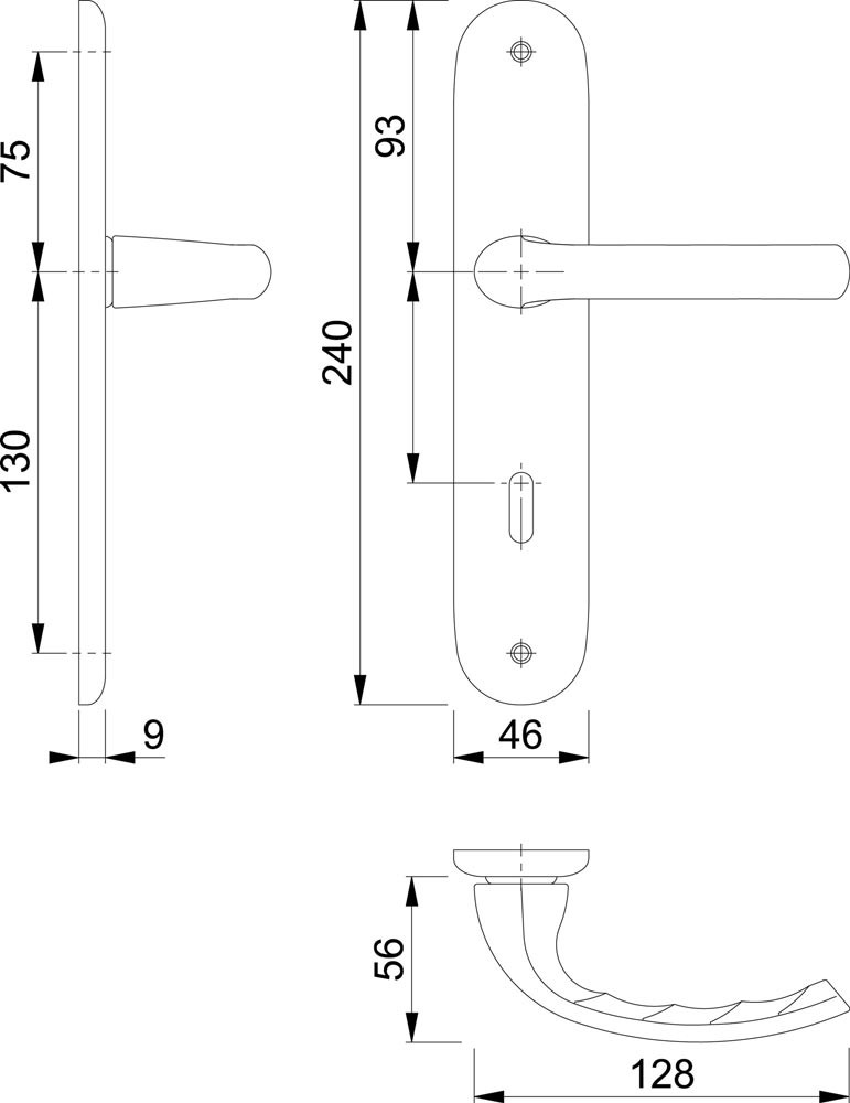 Langschildgarnitur Tky 1710/273P Aluminium F1 SK/OL 78 mm DINlinks / rechts E6428199