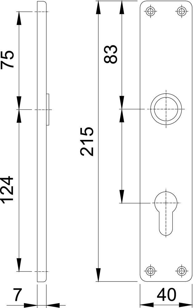 Schilder sichtbar verschraubt · Länge 215 mm, Breite 40 mm