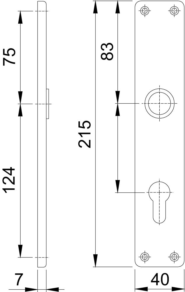 Schilder sichtbar verschraubt · Länge 215 mm, Breite 40 mm