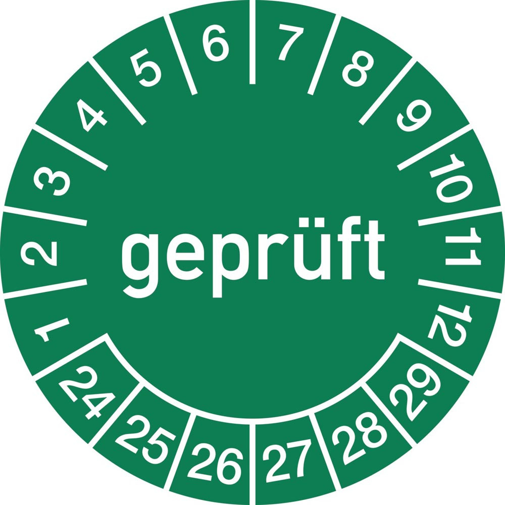 Mehrjahresprüfplakette Ø 15 mm geprüft 2024 - 2029 Folie Beutel a 100 Stück