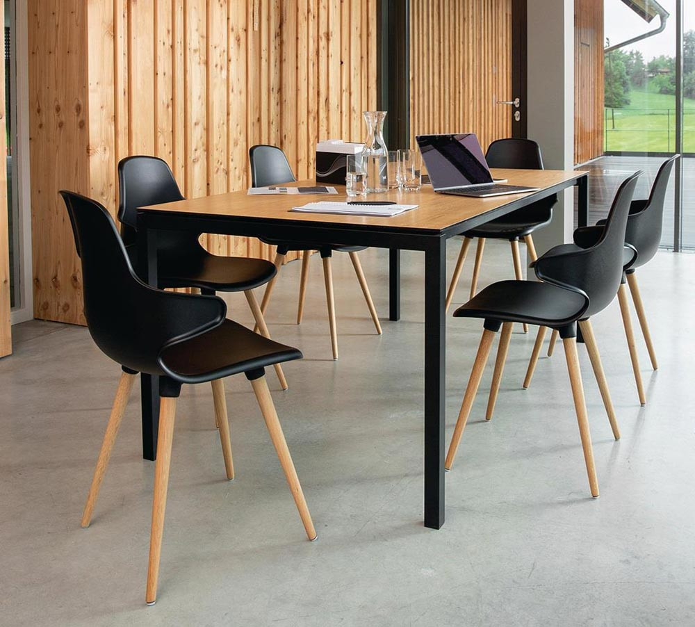 Mehrzweckstuhl schwarz Holzbeine Buche VE = 2 Stück im Karton E6482982