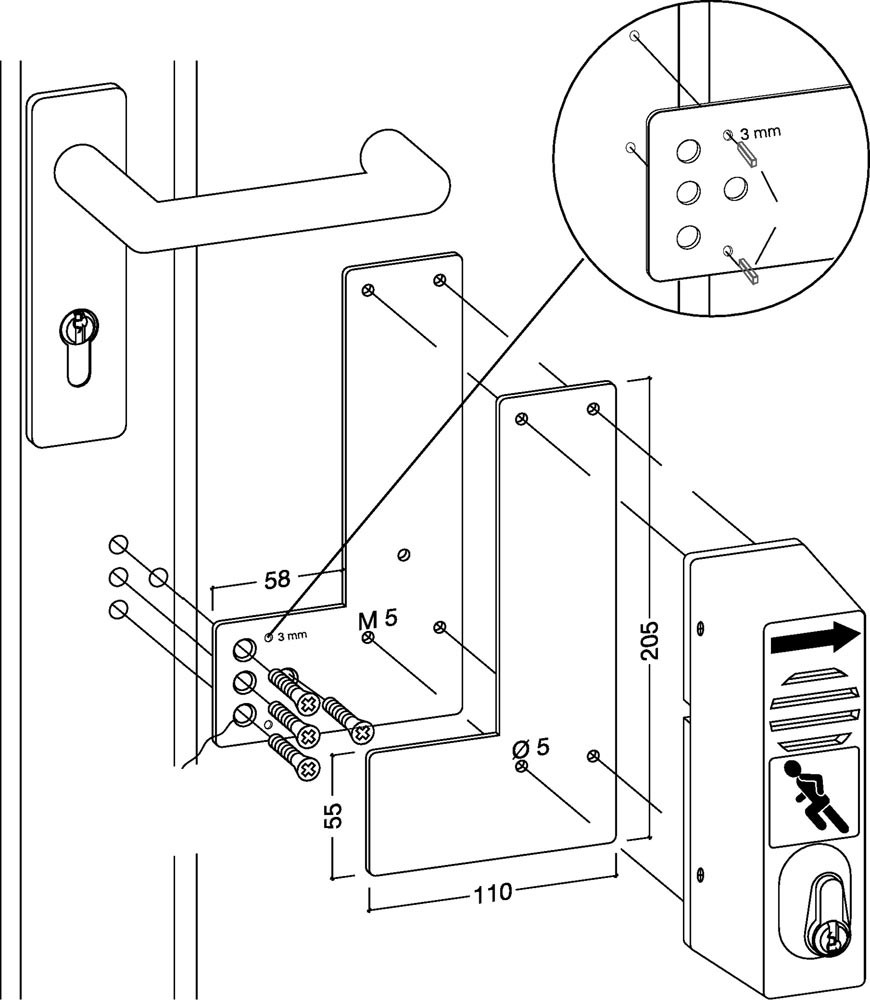 Montageplatte 991470 Montage an Glastüren EH-Türwächter DINlinks / rechts L175xB170mm