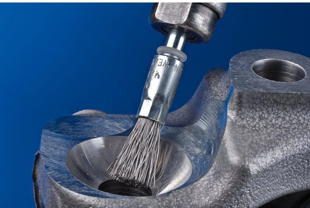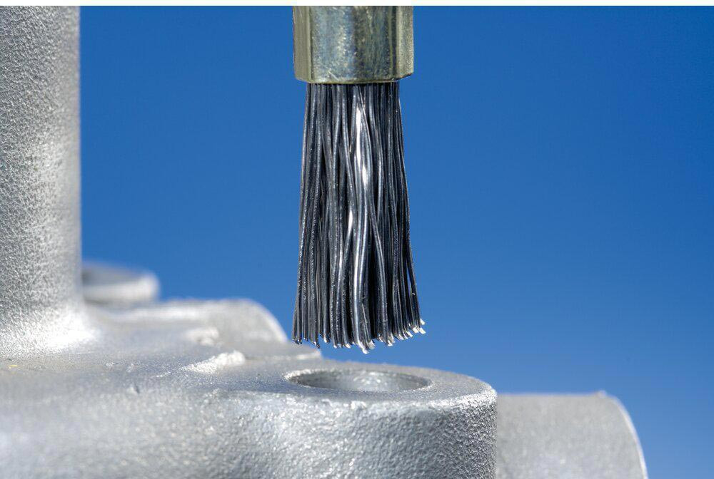 · Vorteile: Erzeugt feine Oberflächen. Lange Standzeit durch die Verwendung von PFERD-Spezialdraht. Optimales Erreichen von schwer zugänglichen Stellen wie Bohrungen und Hohlräume durch Aufspreizen des Besatzes bei Rotation.