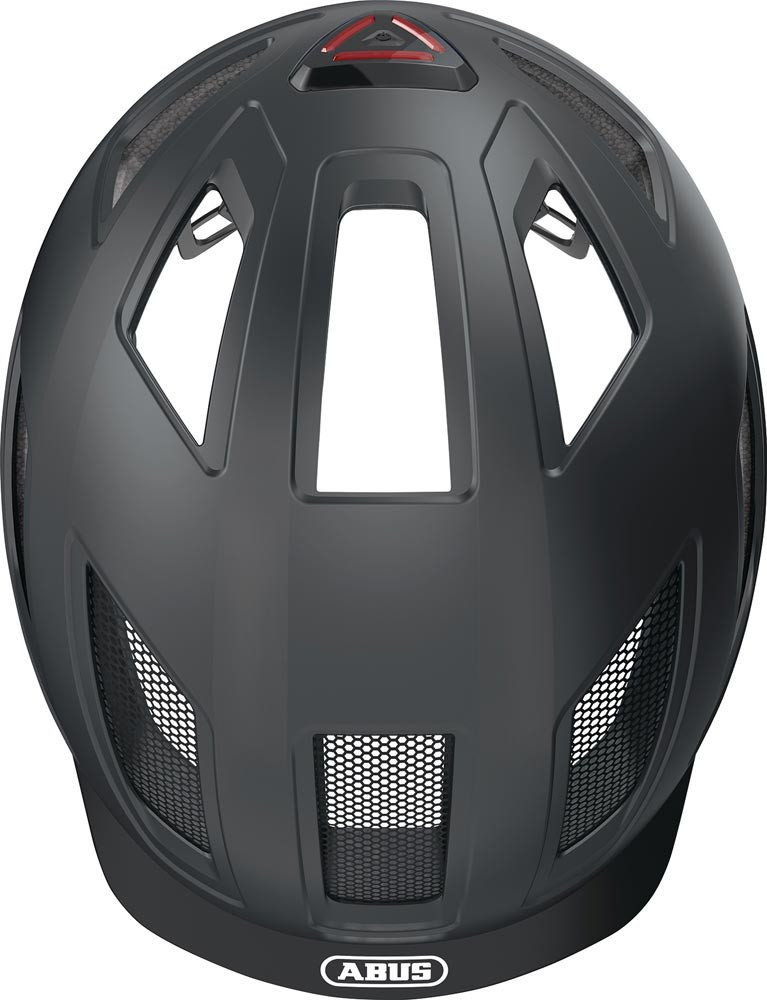 aus ABS-Hartschale – robust konstruierter Helm aus EPS und gespritzter Außenschale · optimale Ventilation durch 5 Luftein- und 8 Luftauslässe · hohe Sichtbarkeit durch leuchtstarke Reflektoren · hoch angebrachtes, integriertes, leuchtstarkes LED Rücklicht mit 180° Sichtbarkeit · Fliegennetz · feinjustierbares Verstellsystem mit griffigem Verstellrad für individuellen Sitz