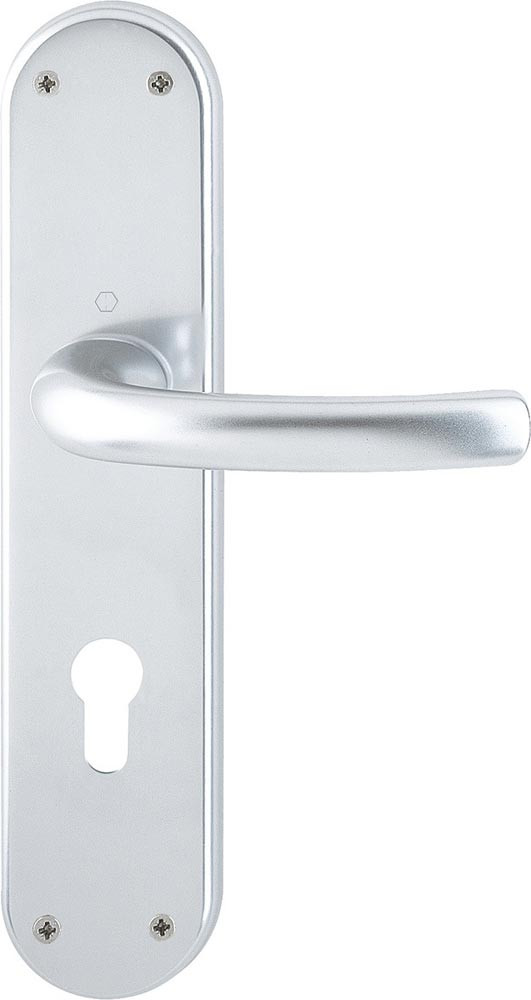 Innentür-Langschild-Garnitur · geprüft nach DIN EN 1906 (Gebrauchs-Kategorie Klasse 3) · Verbindung: HOPPE-Schnellstift mit HOPPE-Vollstift (Stift-/Lochteil) · Vierkant 8 mm · Schilder sichtbar verschraubt · Entfernung 72 mm
