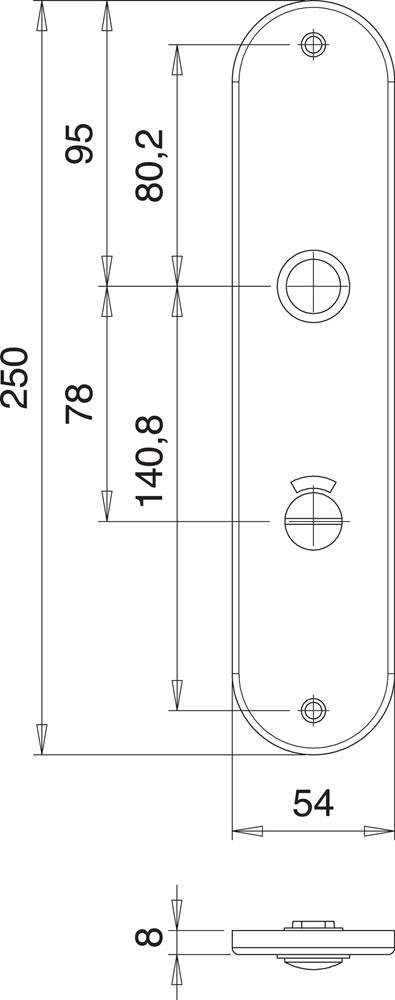 Edelstahl · oval · sichtbare Verschraubung · Breite 54 mm · Länge 250 mm