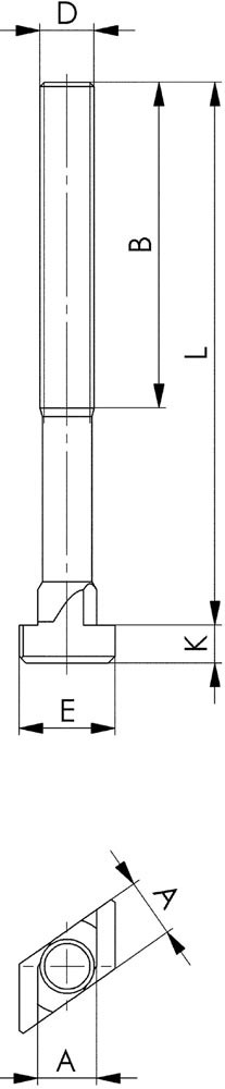 für T-Nuten · geschmiedet · T-Nutenführung gefräst · gerolltes Gewinde · vergütet auf Festigkeitsklasse 8.8 · durch die verringerte Auflagefläche in der T-Nute ist die Belastbarkeit geringer als bei den vergleichbaren Größen DIN 787 · die Spannschraube wird nachträglich, auf einem bereits eingerichteten Maschinentisch, von oben in die T-Nut eingesetzt