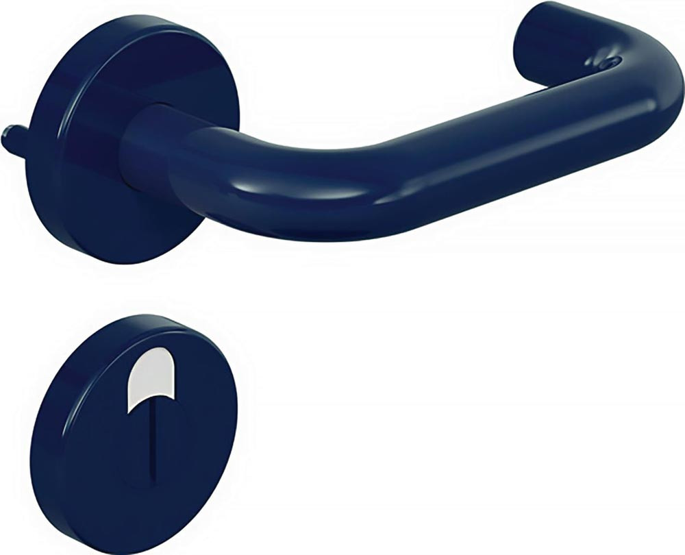 Türdrücker in U-Form aus Polyamid mit durchgehendem Stahlkern bis in das Drückerende, durchgängig eingefärbt, Durchmesser 20 mm, mit Ansatzführung und Rastnut, Montage durch einfaches Einrasten der Türdrücker in die auf der Tür vormontierten Unterteile.