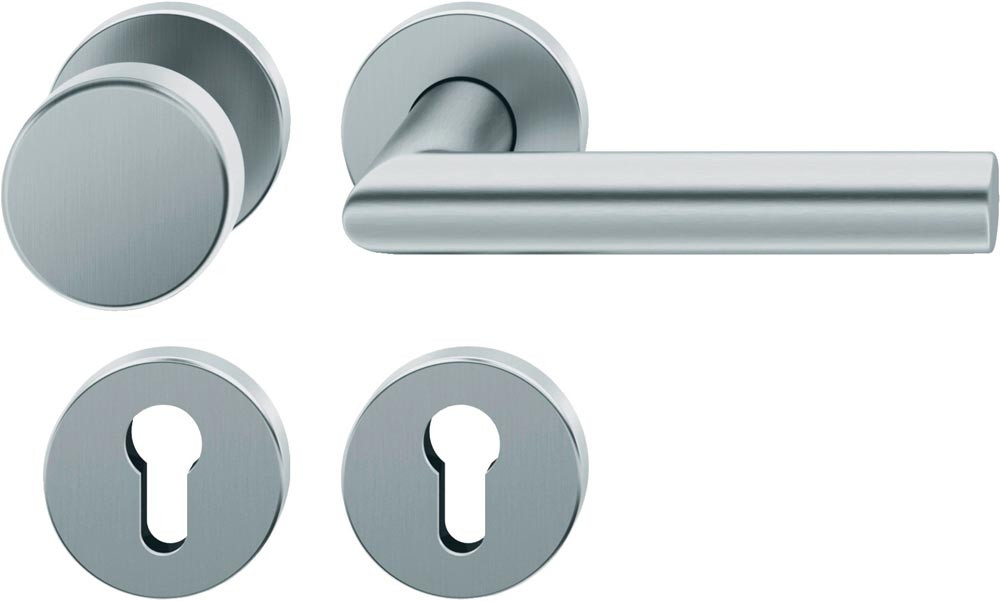Rosettengarnitur 12 1076 Edelstahl F69 rund PZ DIN links / rechts flach D/K